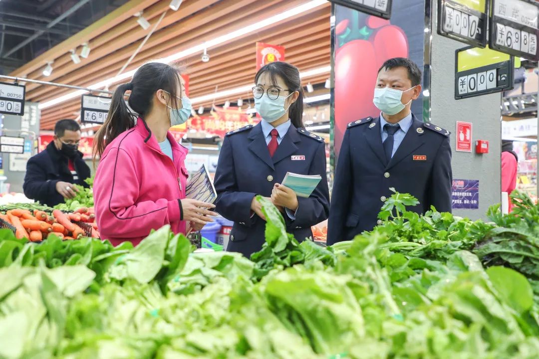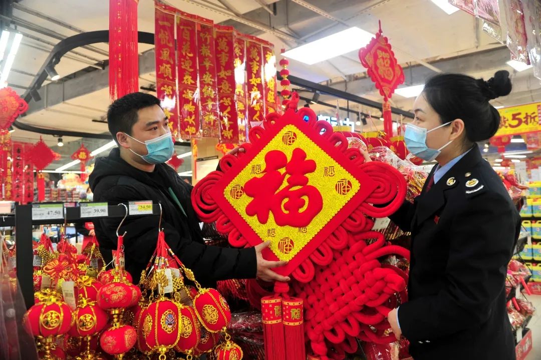 在云南,国家税务总局楚雄彝族自治州税务局干部暖心入企,走访各大商超,为“年味”护航。(善从淙/摄)