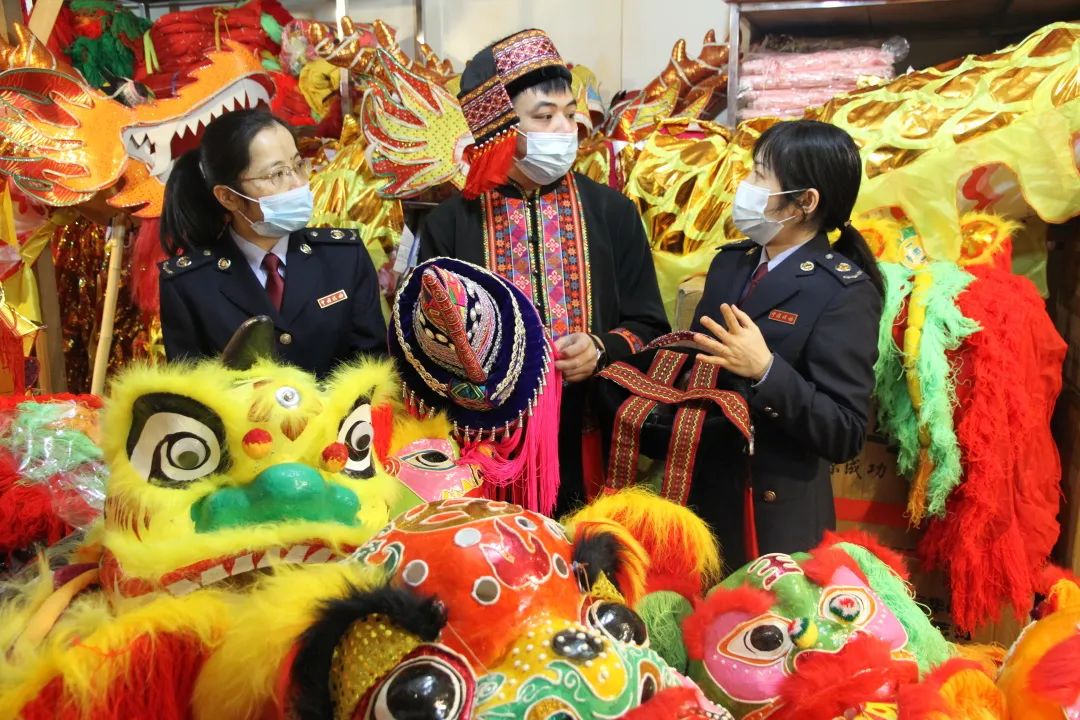 在广西,国家税务总局恭城瑶族自治县税务局干部走访了“张福记”老字号彩扎工艺作坊,为纳税人送政策送服务,鼓励作坊留工优工。“张福记”彩扎工艺是自治区级非物质文化遗产,过去两年带动了近700人就业,营业收入达1800多万元。(孙斌/摄)