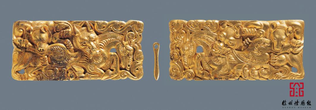 西汉 有孔金带头(附穿针)徐州博物馆藏