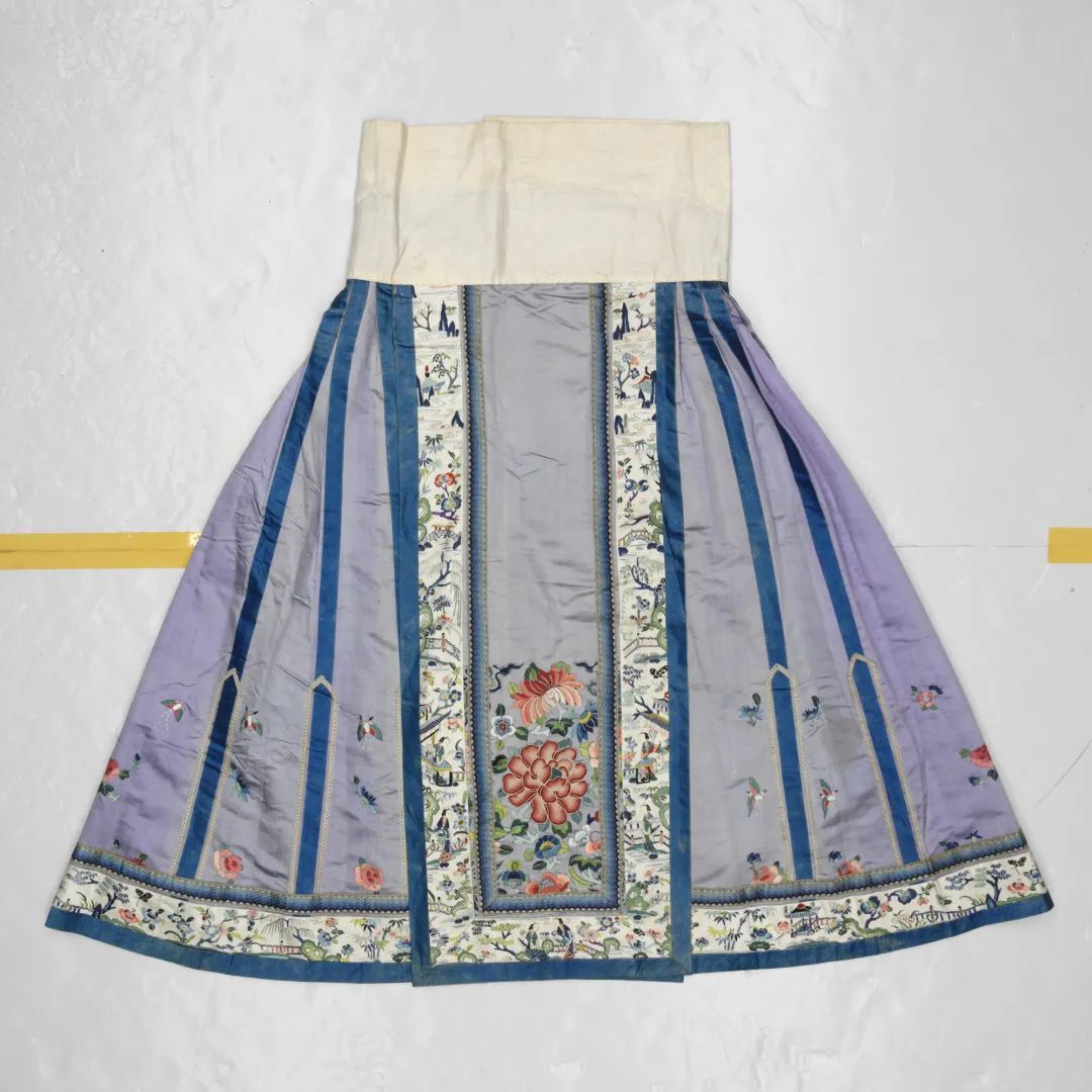 清 雪青色绸绣仕女花卉阑干裙国家博物馆藏