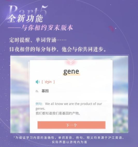 除了搞小图片吸引老玩家回坑,《恋与》在新版本中还加入了背单词功能。虽然背单词多寡与攻略野男人没多大关系,但或许这一功能的出现,能让学生党在面对父母“就知道玩游戏”的唠叨时,理直气壮地举起手机“我是在背单词!”