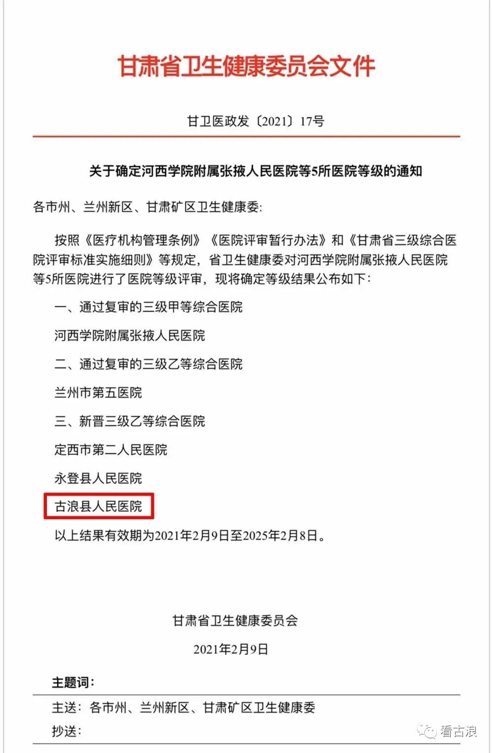 原标题:《古浪县人民医院成功晋级三级乙等综合医院》