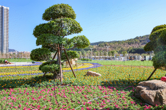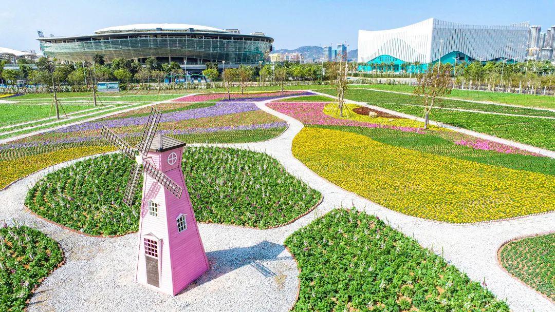 漫步在横琴新区琴石道旁,成片花海恣意绽放,多达15个品种的花卉分布其中,形成万紫千红的花海奇观。花海区域约3.9万平方米,设置有花海迷宫、风车花海、稻草人、七彩花田等各色景观,把横琴新区装扮得婀娜多姿,令人流连忘返。