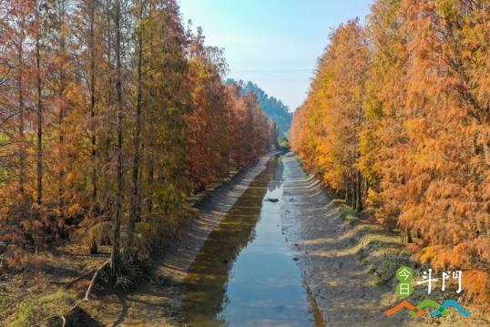 金黄、褐红的枝叶层林尽染,成群结队的白鹭,盘桓于水天之间。落羽衫迎来别样彩妆,像打翻了染色盘,蔚为壮观。