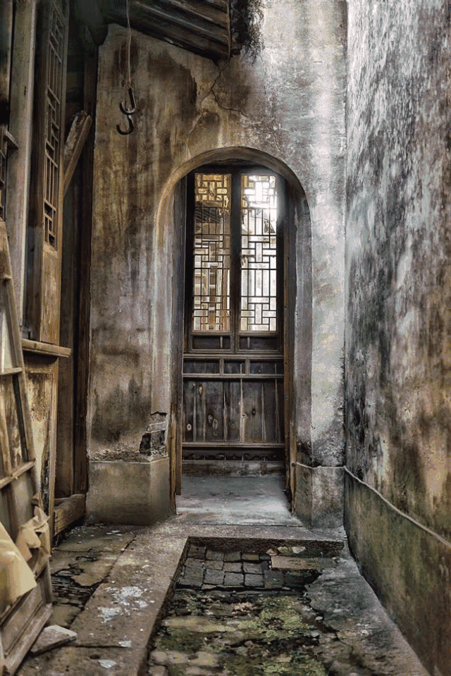 北面为两层高的建筑主体,其他为一层高建筑。老宅已被不同人家租住,原本一正厅两厢房的布局难以细细探究,建筑内精美的雕花月梁展现出鼎盛时的繁华。仪门保存完整,精细的雕刻和完整的门饰,让老宅盛景依稀可见。