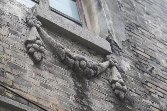 宅院周围有一圈勒脚围绕,共有东、南、西三个门。东、西两门一样,保存完好,门上雕花丰富,石质门框边上的西洋柱更是精美,门楼雕刻精细,立体感强烈,两只凤凰盘旋于门头,显示出江南传统民居特色。