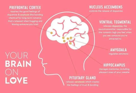 在吸引力阶段,神经递质激素、多巴胺、去甲肾上腺素、血清素等的释放会增加,爱情的愉悦感加倍;