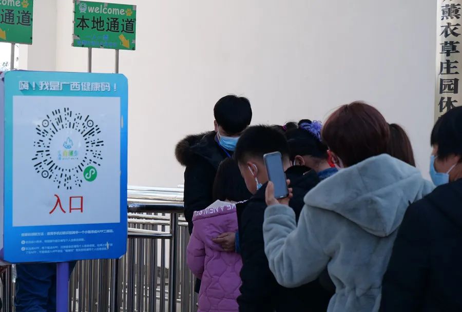 “今天是大年初一,客流量比较多,游客也比较配合,都主动佩戴了口罩,主动扫码,出示健康码,我们的工作人员也及时做好了疫情防控工作。”忻城县文旅交通投资集团有限公司值班领导介绍说。