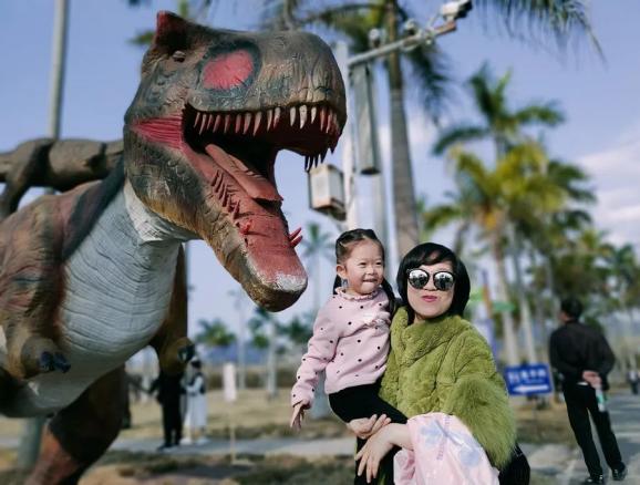 “今天天气很好,带着家人一起来这里转转,很开心。不仅能让孩子感受大自然的乐趣,也让她看一下这里的‘恐龙’吧。”城关镇的蓝先生带着孩子在侏罗纪乐园一边拍照一边说到。