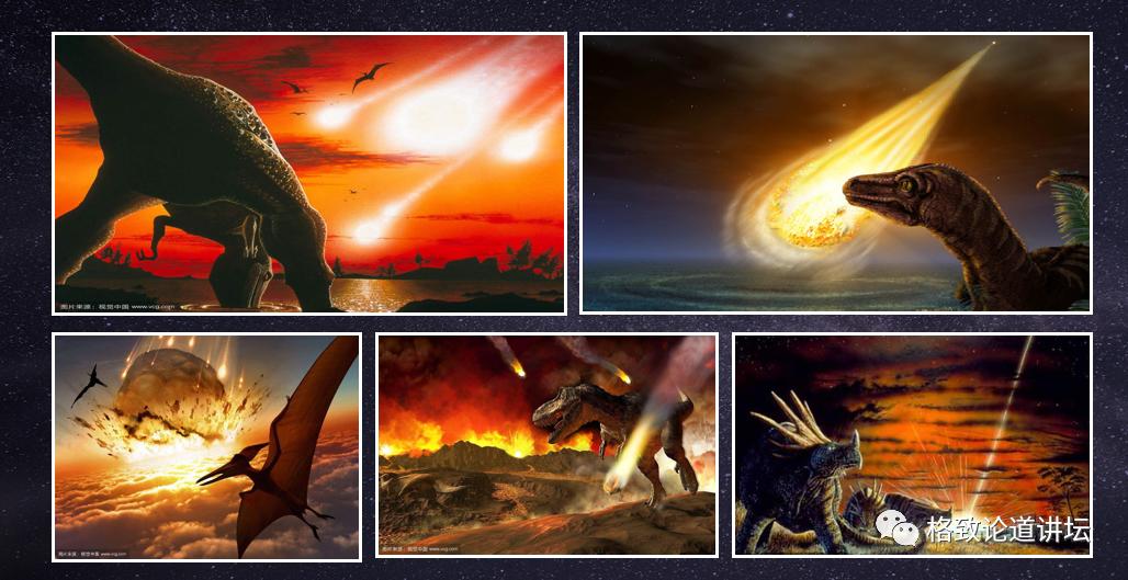 恐龙上一次旋转在这个位置时候,它刚刚诞生,它旋转到对角大概距今一万五千万年前的时候达到了极盛,继续旋旋过对角,大概在距我们7000万年前的时候,迎来了毁灭。
