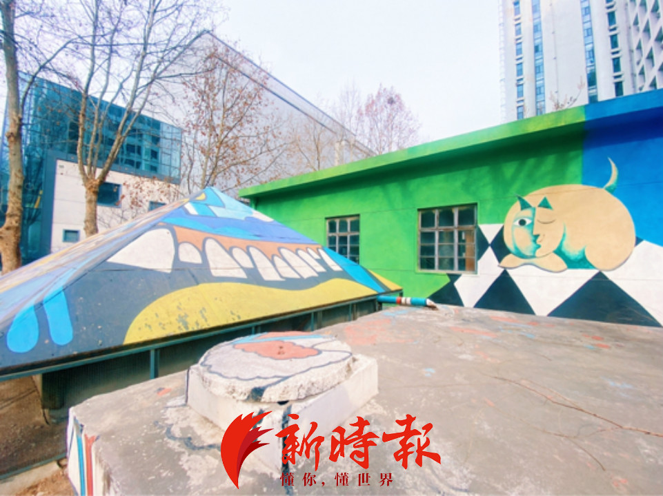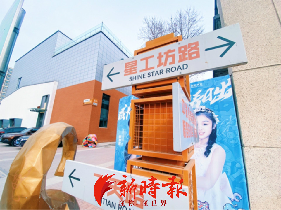 13日下午,新时报记者来到了山影星工坊。此处的建筑装修风格偏“儿童化”,但园区内有不少被彩绘加工过的机械摆件,比较吸引喜爱工业风的年轻人。正值春节小长假,有部分家长带着孩子来此处游玩。