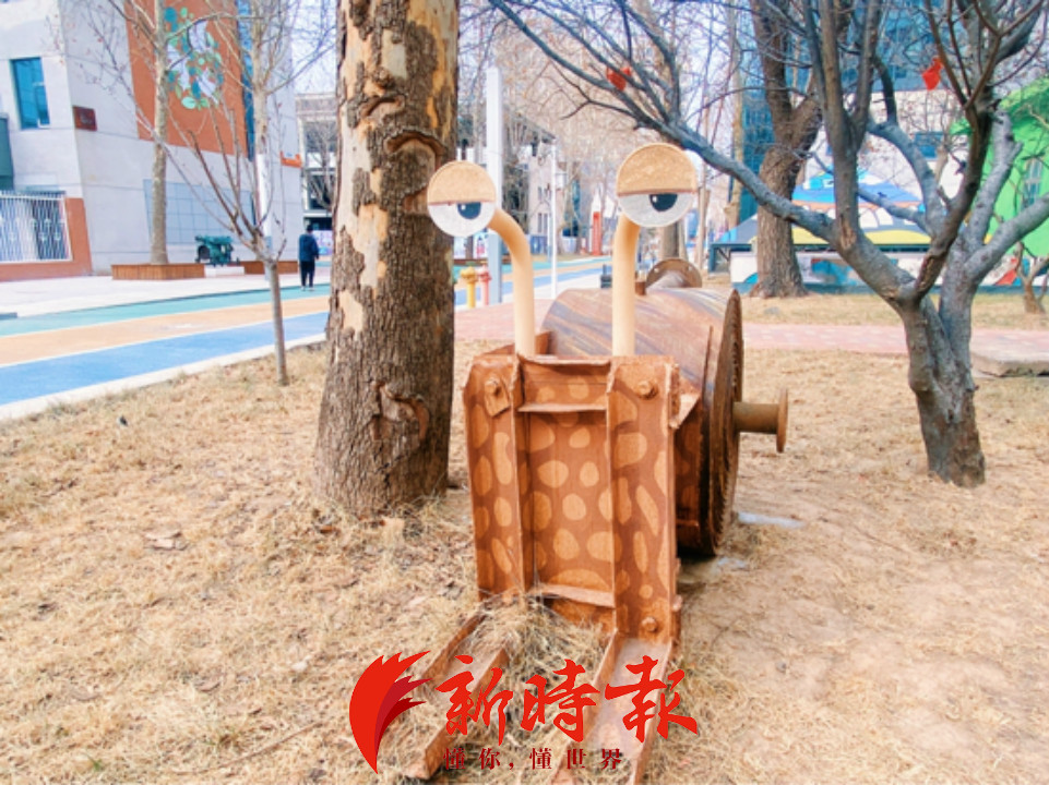 新时报记者注意到,园区内有部分老锅炉、阀门、机械设备、老旧管道等,经过园区设计师的改造,变成了孙悟空、蜗牛等形象。部分老旧的阀门零件也被改造成长椅、雕塑。