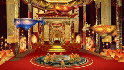 背景从仕女画到泼墨山水到最后舞台上平地起宫墙又很震撼
