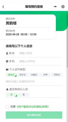 2.填写姓名、手机号、个人证件类型、个人证件信息并点击“提交预约信息”,完成预约。