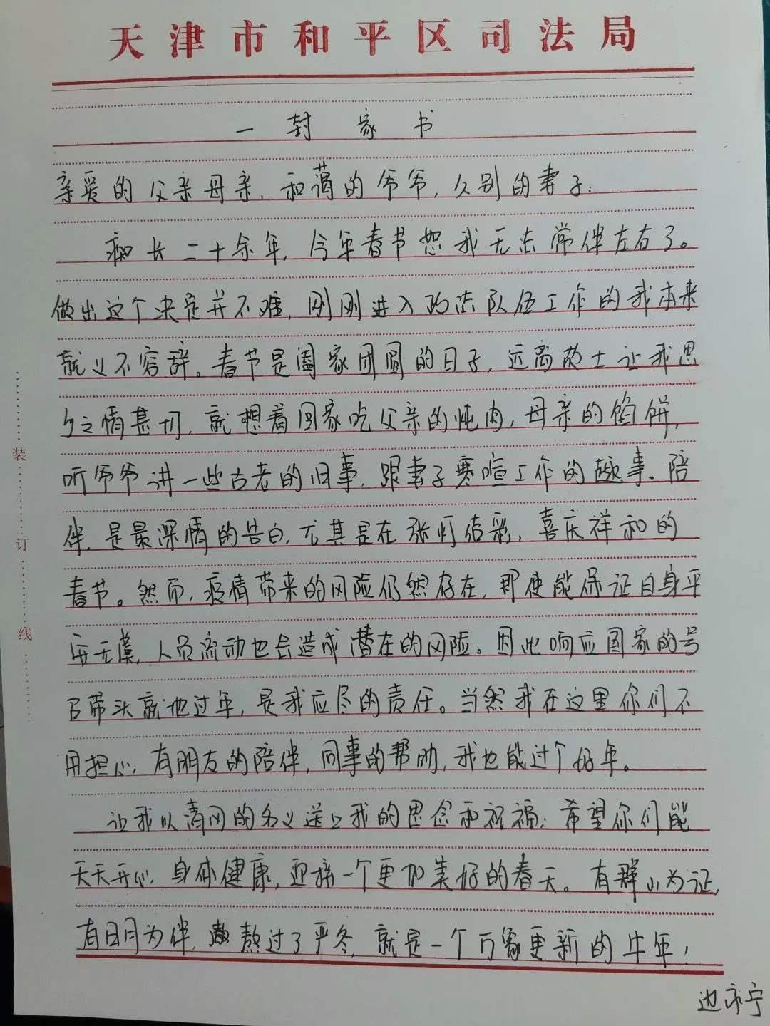 来源:东丽区委政法委、宁河区委政法委、市一中院、市三中院、市检一分院、南开法院、蓟州检察院、公安图侦技防总队、青泊洼戒毒所、宁河法院、港南戒毒所、女子戒毒所、公安宁河分局、宁河区司法局、长泰监狱、滨海戒毒所、和平区司法局、板桥戒毒所(排名不分先后)原标题:《爸妈,展信安。我在天津挺好的……》