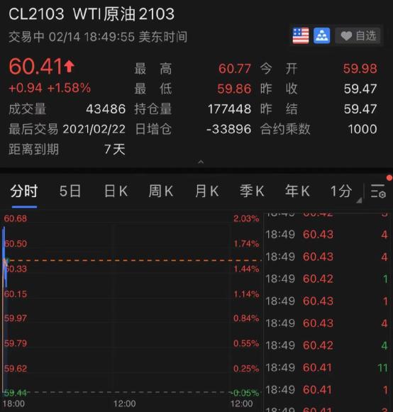 北京时间今晨,WTI原油期货开盘后不久涨幅一度在2%左右,站上60美元关口。
