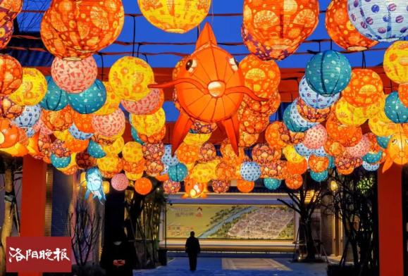 ●街头巷尾洛龙区正平坊游园双面流星灯、彩色灯串等纷纷亮起,如梦似幻。老城区瀍涧大道与定鼎路交叉口“牛年贺岁”彩化造型、高新区火炬大厦“春”彩化造型、二广高速伊滨站“祖国山河”彩化造型别具特色。