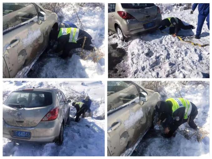 在辽宁本溪,2日15日,大年初四,一辆灰色小型轿车由于路面冰雪湿滑,驾驶人操作不当导致车辆侧滑至路边雪沟,交警在巡逻中发现后,找来拖车绳并发动过路司机帮忙。经过40多分钟的努力,终于将该车成功拽出边沟。