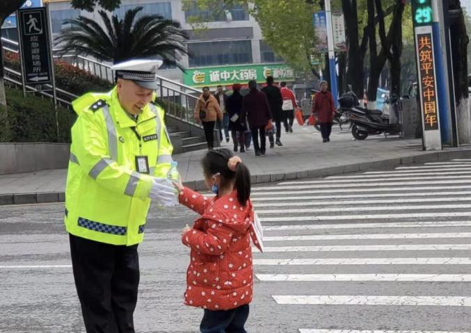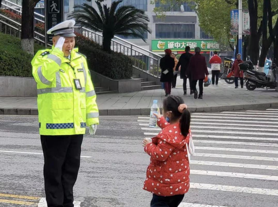 2月11日,大年三十,湖南怀化,59岁的交警陈自祥正在参与春节高峰岗的执勤,一个小女孩给陈自祥送来一瓶水。一个敬礼、一个微笑、一声谢谢,他用这一连串的动作向女孩、向所有支持理解的群众表示感谢!