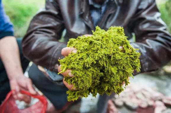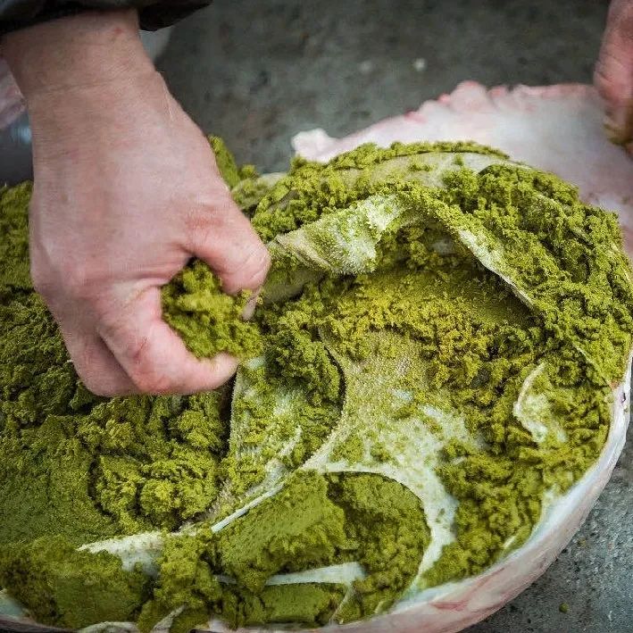 ▲ 黔东南的牛瘪,像不像你们爱的抹茶? 摄影/陆宇堃一锅羊瘪汤红红绿绿,隐隐带着清香,捞出羊肉,是最本真的自然风味。吃到一半添入各色时蔬,尤其是当地的野菜,本身带有苦味,两苦交叠,味道奇绝。而且吃火锅时的羊瘪汤半道上不会加水,只管熬,老饕们等到熬得剩个底儿,苦味更醇更香,这时候再吃别的,苦尽甘来,别有一番滋味。