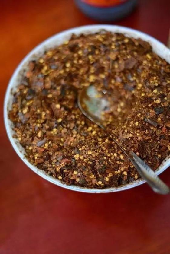 尽管返工第一天,很多漂泊在外的贵州人,又要开始靠这罐“女神辣酱”聊解乡愁、安抚肠胃;但过年回家的时候,到菜市场随手买一把干辣椒,捣碎了和花椒、芝麻一炸就是“老干妈”的原型:油辣椒。
