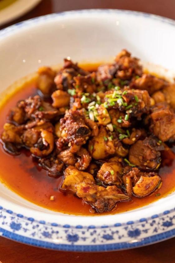 当鸡块在油锅中与糍粑辣椒一同翻炒,辣味连带着姜、蒜的香气缓缓入侵其中,均匀地渗透到鸡肉的每一个角落。因此贵州的辣子鸡虽不比川渝那般火爆热辣,却胜在回味悠长。