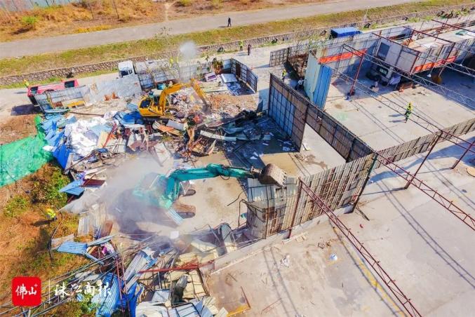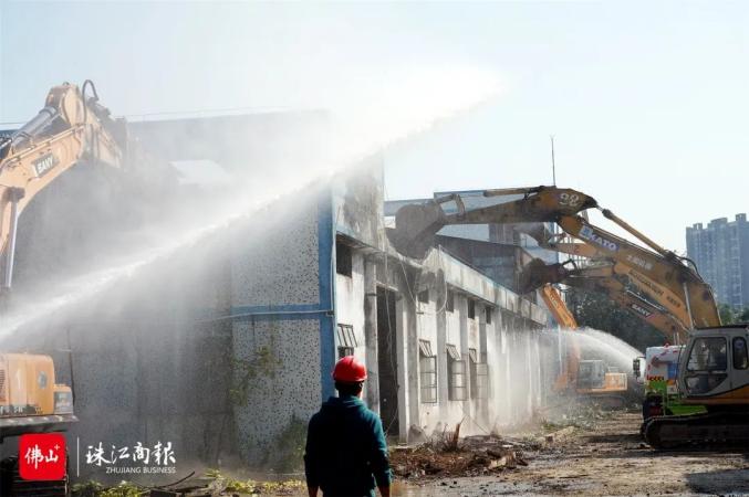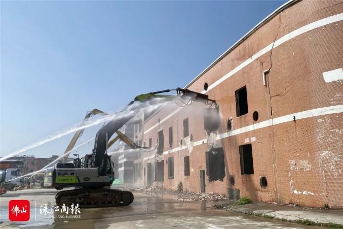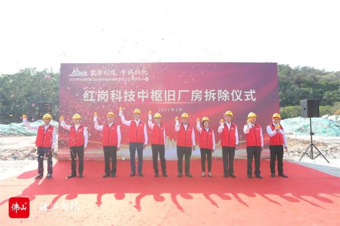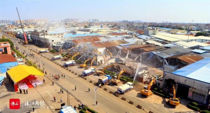 大良红岗科技中枢旧厂房拆除仪式现场。这边厢,红岗科技中枢一天之内完成旧厂房清拆约4万平方米,露出大富山绿色生态;万家乐正式启动全面搬迁,将入驻“湾区智慧家·智造园”,计划在6月底前完成搬迁并同步启动旧厂房清拆,为德胜河北岸升级改造腾出空间。