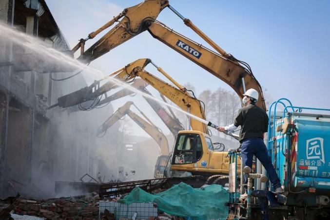 “三、二、一,开拆!”上午,随着一阵响亮的鸣笛声和口号声,龙江镇启动多台钩机和洒水车同时作业,对东海工业区破旧落后的厂房一一进行清拆。据悉,此次行动将拆除整个工业片区占地面积约264亩的旧厂房。