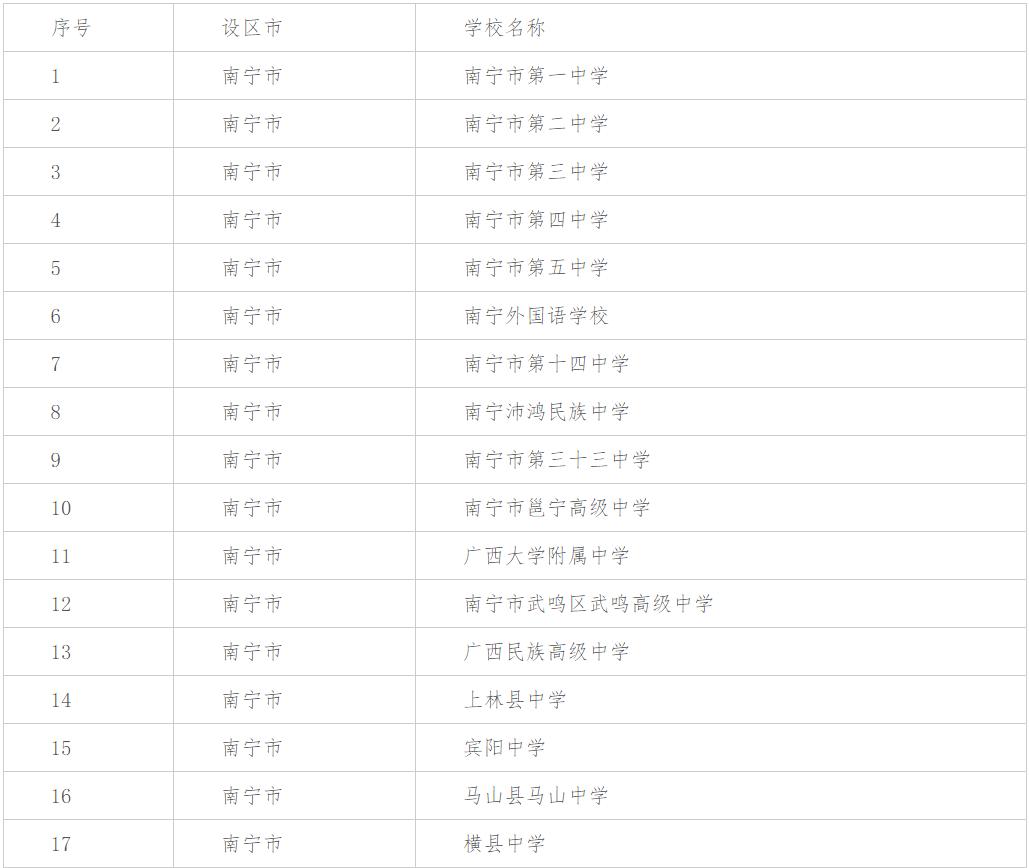 普通高中新课程新教材实施自治区级示范区名单南宁市