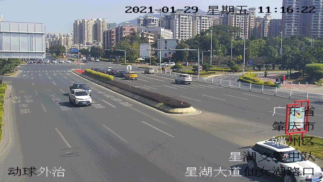 以星湖大道和砚都大道交界东往西方向为例