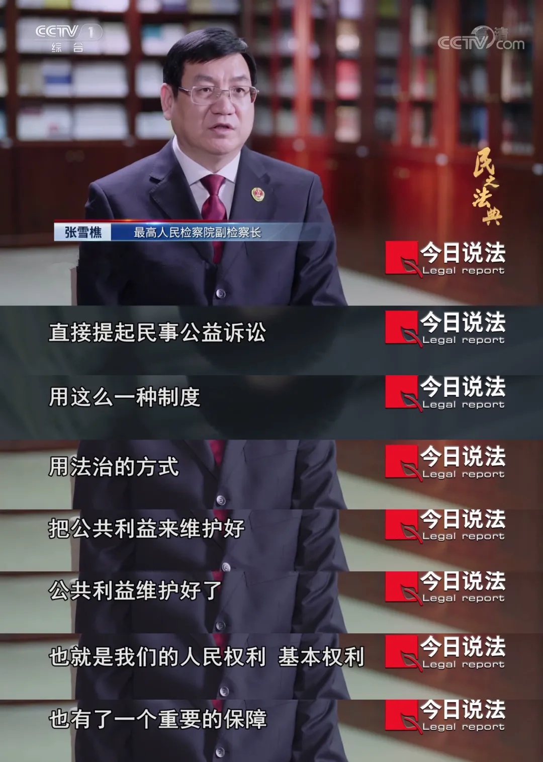最高人民检察院副检察长张雪樵:直接提起民事公益诉讼,用这么一种制度,用法治的方式,把公共利益来维护好。公共利益维护好了,也就是我们的人民权利、基本权利也有了一个重要的保障。