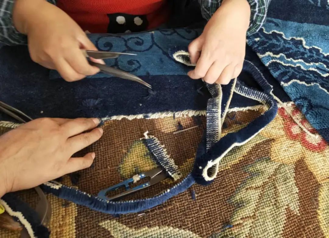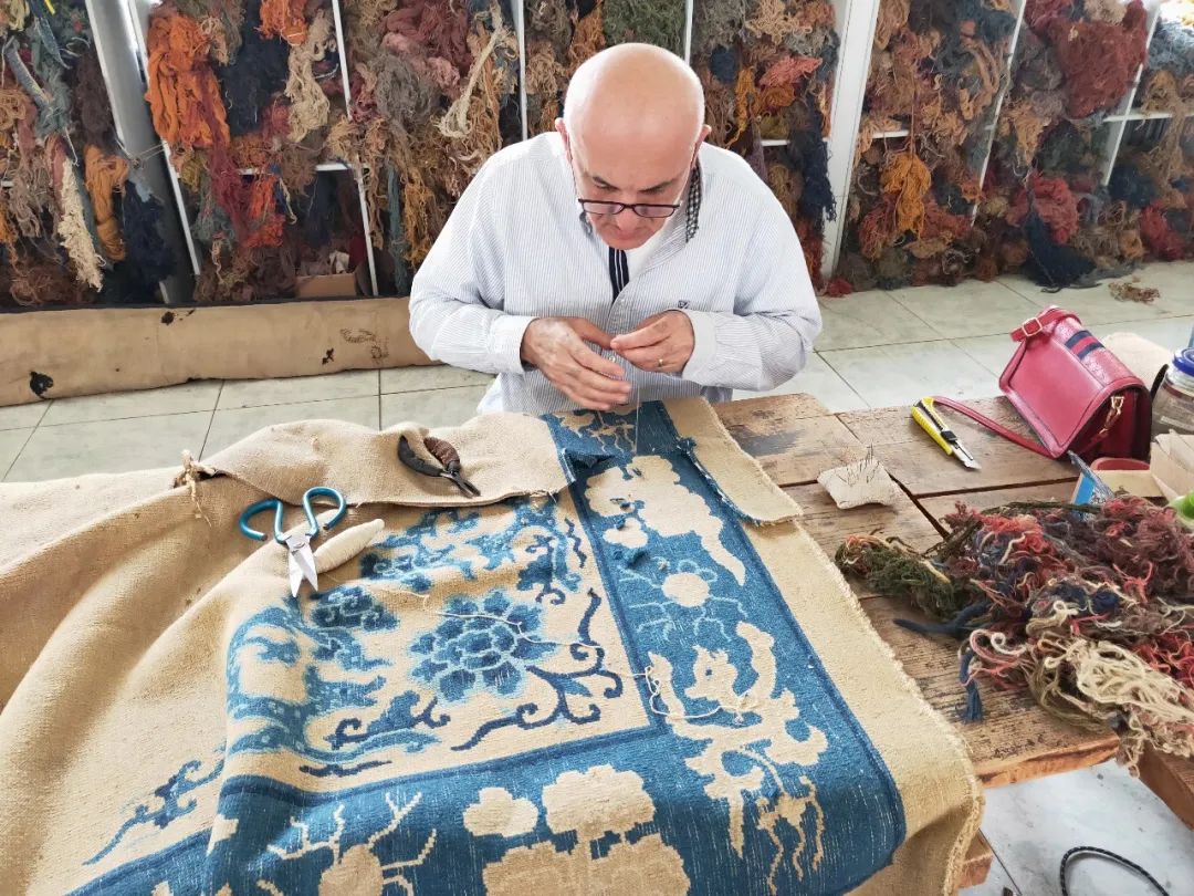 庄见:有一些地毯确实挺好,但是已经破的不成这样子了。我们需要把它做复原,用老的毛线修旧如旧。