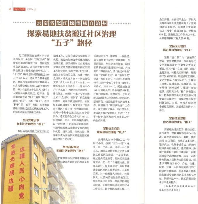 原标题:《这本权威杂志聚焦怒江易地扶贫搬迁社区治理经验》