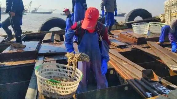 2月20日上午9点左右,舟山国际水产城的卸货码头已经有不少正在排队等待卸货的渔船,码头上人潮涌动十分热闹。