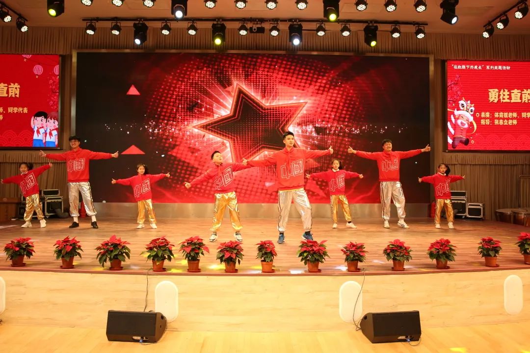 摇篮民乐队的同学们用一曲《我是一个兵》致敬英雄,迸发出了时代的“最强音”;活力四射的拉丁舞展现了打一少年的精神面貌;上海公民警校的警官通过一个个生动的小故事,为全校师生带来新学期的安全第一课;团员教师携手少先队员同台演绎《牛牛操》,为全校师生送上新年祝福……