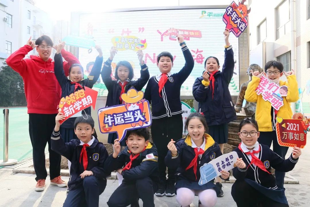 活动不断,还能探秘校园!“牛年快乐!”在平凉路第三小学的校门口,大队委员们高举标语牌为同学们的开学“打call”,学校为大家送上“心愿胶囊”、新年手环与发箍。