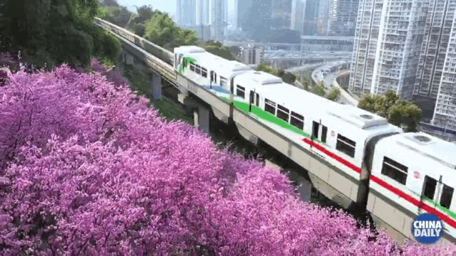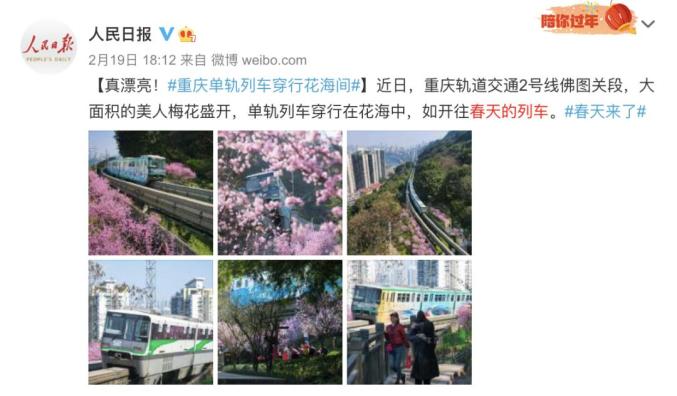 立春以来,鲜花掩映的重庆轨道交通引爆朋友圈,被网友称为“开往春天的列车”。