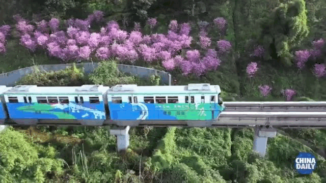 单轨列车穿行在花海中,成为城市中一道亮丽的风景线。为拍到美景,很多人在轨道周围放飞无人机。为此,重庆市公安局九龙坡区分局提醒,目前,重庆警方正着力整治轨道上空的无人机!请大家在欣赏美景的同时,注意自身的安全,不要影响轨道交通的安全运行。