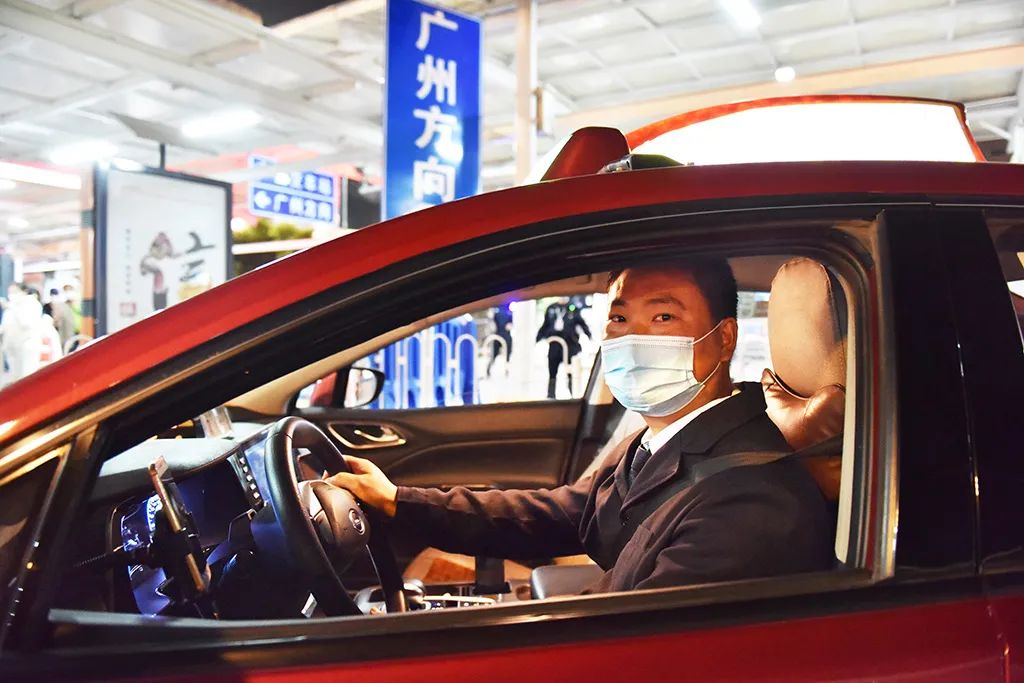 李显来自河南省驻马店市,是一名90后的青年“的哥”,加入出租车行业不久的他,这个春节也跟随着出租车前辈们的步伐,留穗过年,参与春运出租车保障工作。李显表示,“正月初七和初八两天的深夜凌晨,南站遇上了返程客流高峰,我们根据公司调度安排前来参与疏运,这样的客流是过去一年不曾见过的,我们一直奋斗到凌晨三时多,预估正月十五后还会有一波。客流虽大,但旅客们都自觉地戴上口罩,作为出租车司机,我们很高兴啊,无论多晚,能为大家提供及时的出行服务,我都觉得很有意义。”白云机场