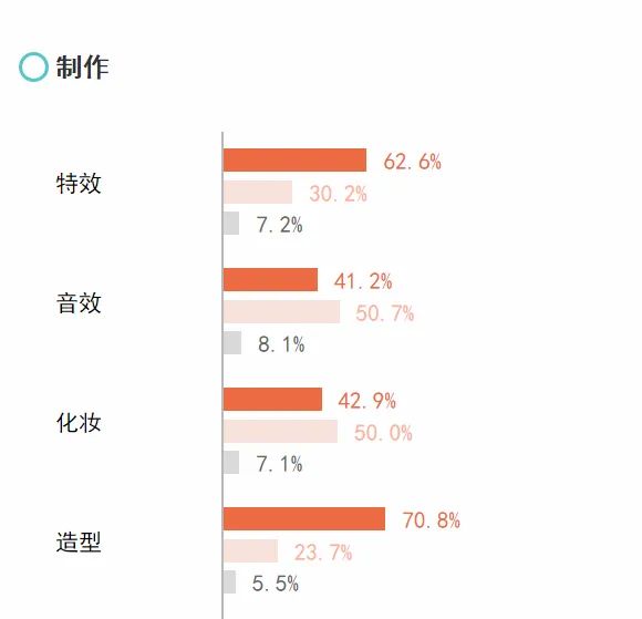 根据《斗罗大陆》的总体好评度也可看出,观众对于制作中特效一项的正向评价达到62.6%,对于造型一项的正向评价达到70.8%,这是其他同类型男频剧鲜少能达到的成绩。