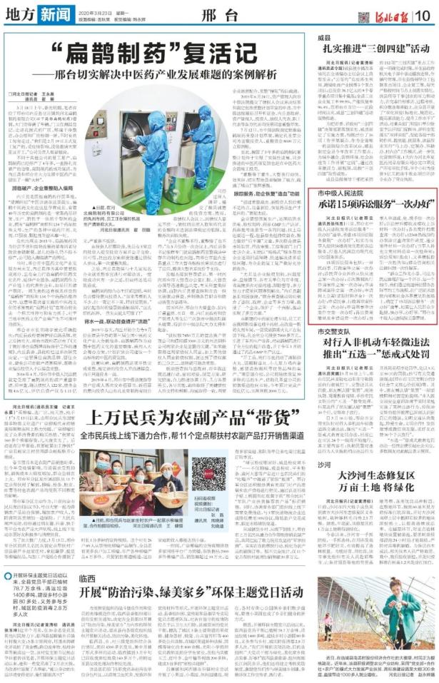 据了解,邢台市法院系统先后推行“三审合一”审判模式和跨区县集中管辖改革,实现了环境审判专业化、集约化,积极探索开设生态环境损害赔偿资金专用账户,将全市法院判决的生态环境损害赔偿资金统一纳入管理。目前,已执行到位800余万元,为生态环境修复奠定了基础。