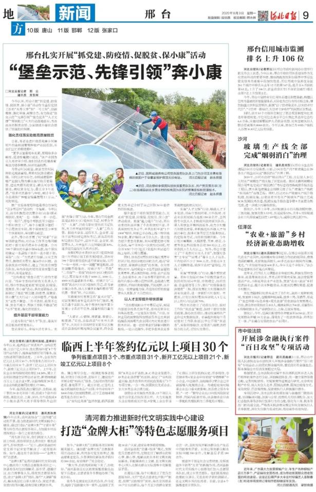 河北日报讯(记者邢云 通讯员路遥)日前,邢台市中级人民法院在全市法院深入开展涉金融执行案件“百日攻坚”专项活动,以防范化解金融风险,营造良好的金融生态,服务保障全市经济发展稳定大局。