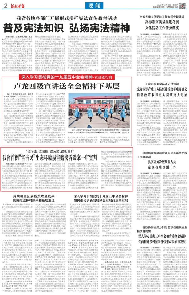 河北日报讯(记者邢云)“邢台市的环境问题本就比较突出,被告的损害行为无疑使邢台环境问题雪上加霜。谁污染,谁治理;谁污染,谁担责!”12月3日下午,邢台市中级人民法院庭审现场,原告邢台市生态环境局的诉讼代理人刘建伟律师的最后发言掷地有声。