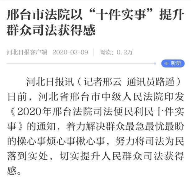 原标题:《邢台市法院以“十件实事”提升群众司法获得感》