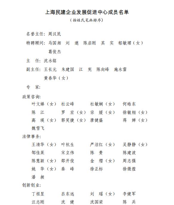大会为上海民建企业发展促进中心成员颁发了聘书。中心设名誉主任、主任、特聘顾问6名、副主任6名,聘请政策咨询、法律事务、创新创业、社会服务、投资融资、评估审计等各类专家76名。