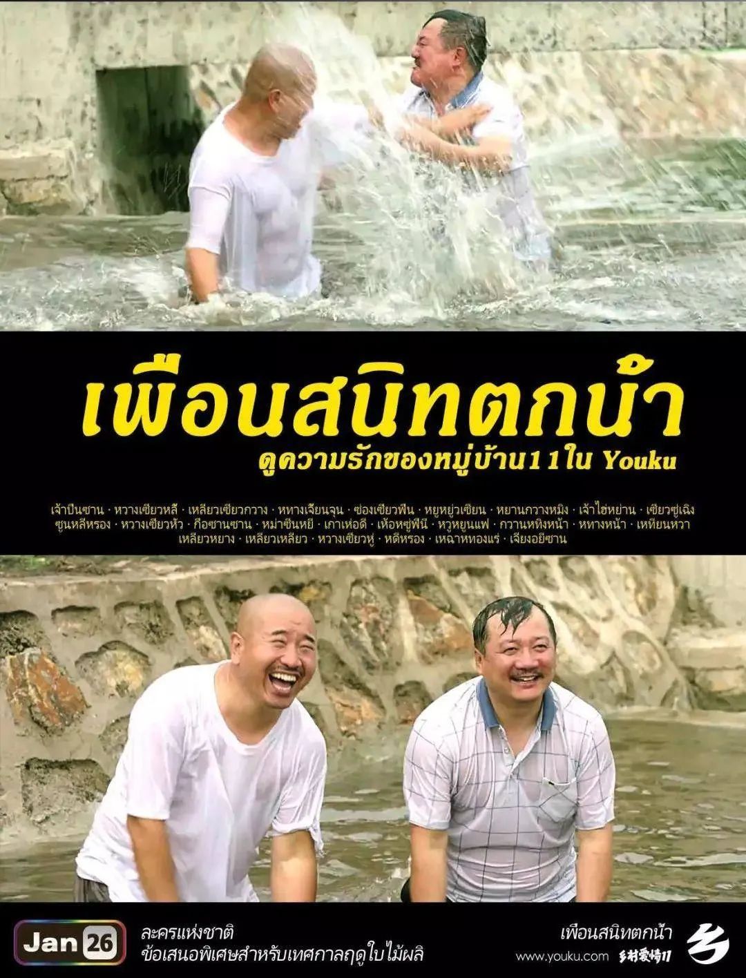 《乡村爱情》泰国版海报喜剧色彩是《乡村爱情》能够出圈的重要保证(大量使用二人转演员),但在80~90年代的农村影视剧里,“喜剧”是一个奢侈品。在当年热播的“农村三部曲”(《篱笆·女人和狗》《辘轳·女人和井》《古船·女人和网》)里,沉重和挣扎是核心词汇。