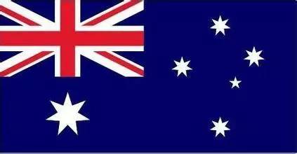 澳大利亚国旗:左上角为英国国旗,表明澳与英国的传统关系。“米”字旗下的大七角星象征组成澳联邦的六个洲和联邦区。其余部分有四颗较大的白色七角星与一颗较小的白色五角星,代表的是太平洋上空的南十字星座。蓝色象征着大海环抱着澳大利亚领土。