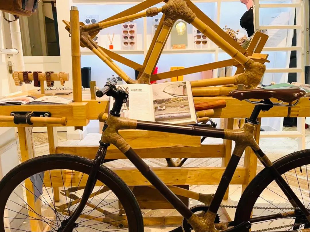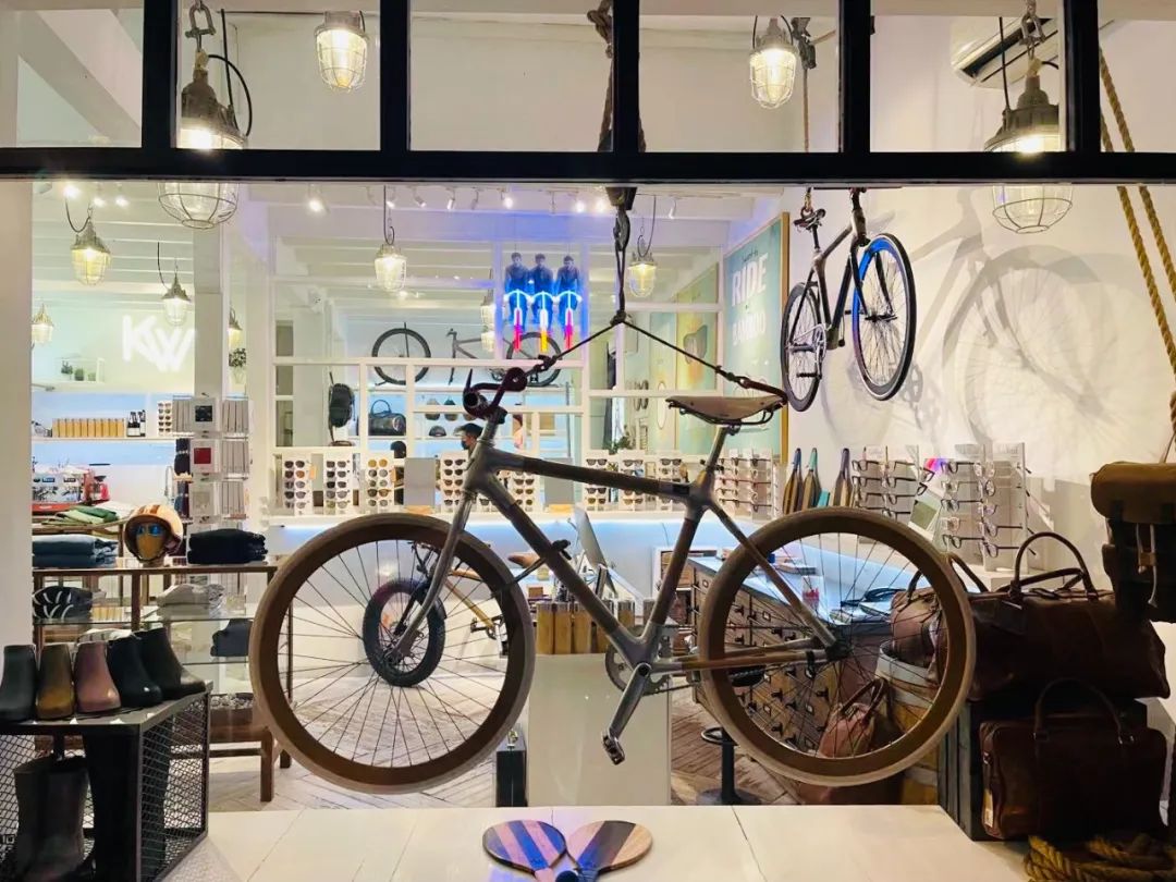 连著名时装设计师Paul Smith也是Kate Wood的粉丝,曾把自己收藏多年的自行车直接搬进伦敦Soho的门店内。他家的自行车框架材料,全部选自3年以上老竹,经过炙烤后不易腐烂,更加坚固。