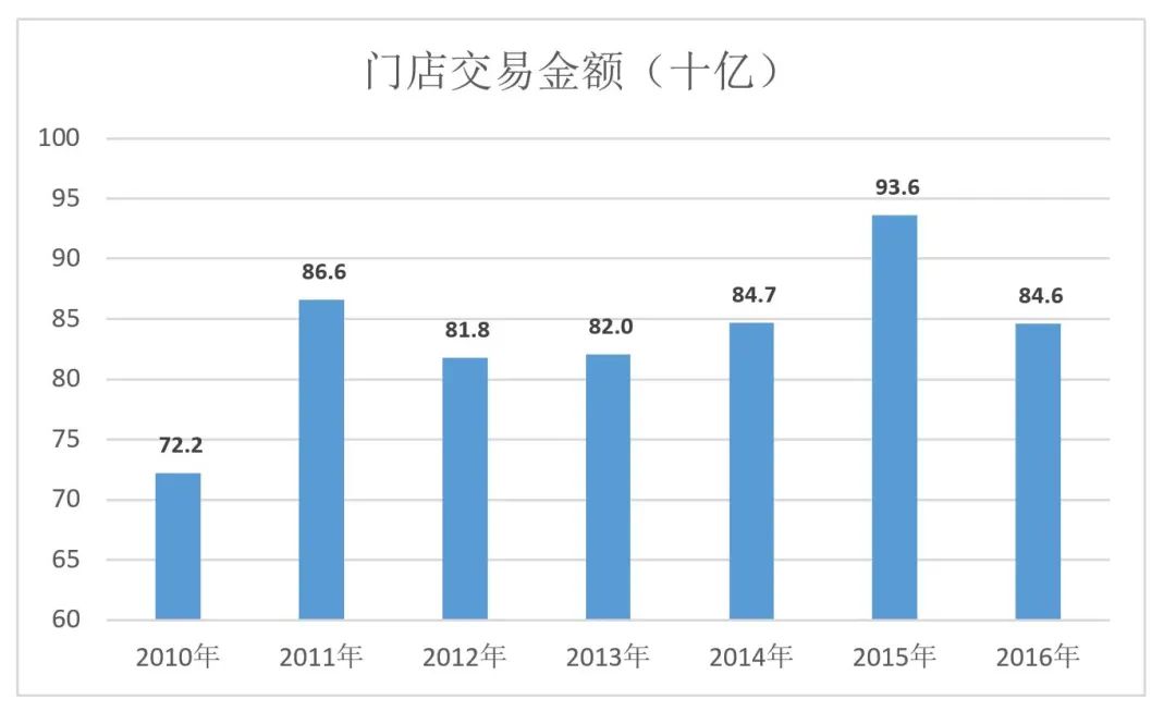 近年来流行一种说法:线上流量增长空间有限而且越来越贵,线下才是真正的流量宝库。门店的客流非常优质、转化率非常高……但保有1500+门店的苏宁,线下交易额却呈现疲态,2016年交易金额846亿,比2011年少20亿,线下高质流量的价值体现在什么地方?