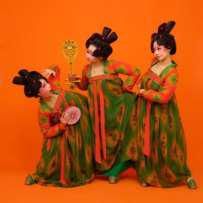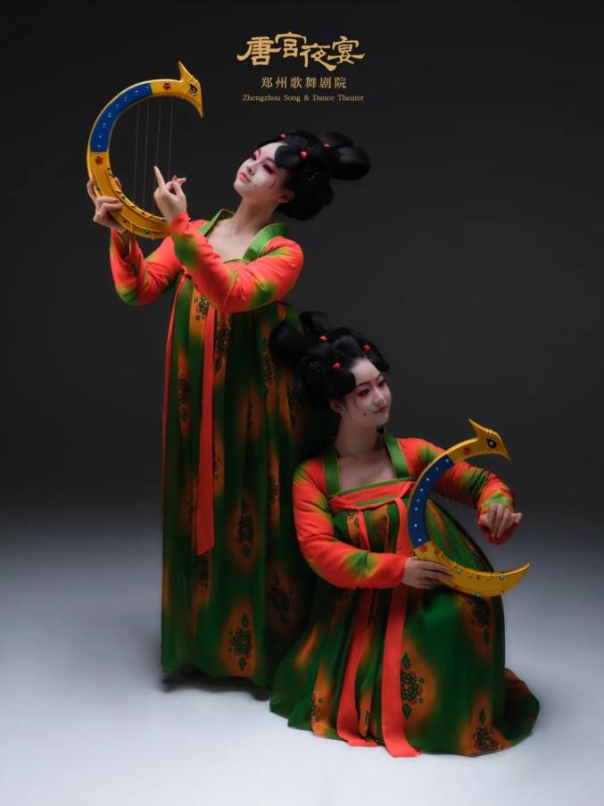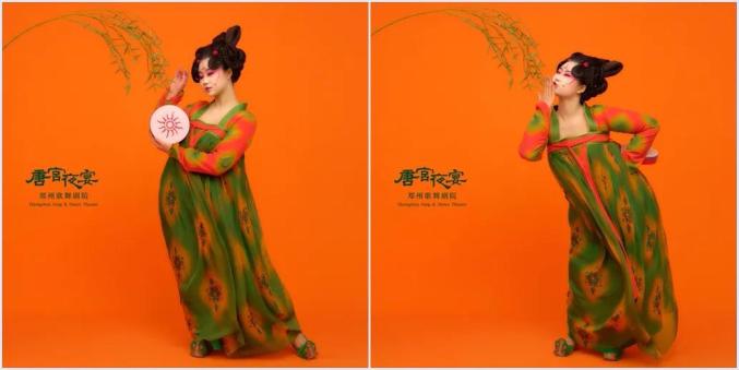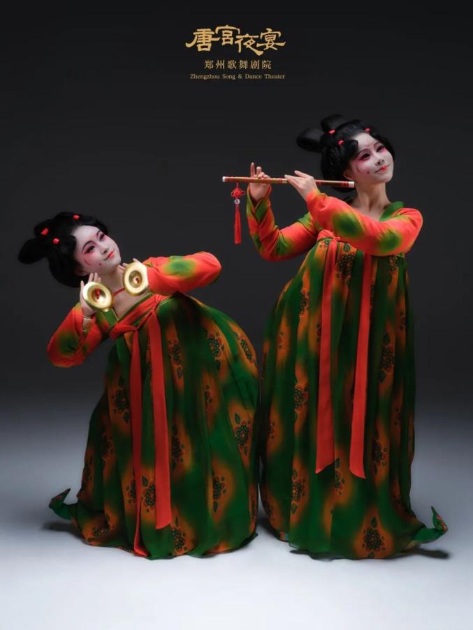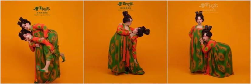 《唐宫夜宴》讲述了正值青春的女乐官在赴宴起舞的路上发生的趣事,将不为人知的可爱、顽皮的形象、性格特点与禁锢下的宫廷生活形成鲜明对比,服装、造型采用极具特点的三彩元素,并极大可能地还原历史,将观者代入到盛唐时期独有的美学空间,展示出三彩艺术之大美中原,大美华夏。